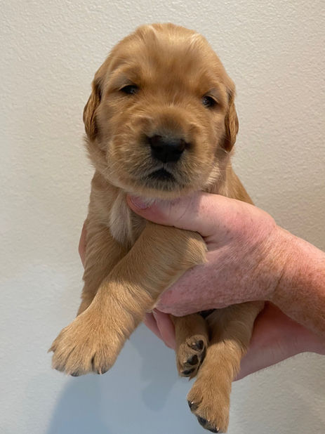 The Sire of this litter, Jasper, is an AKC Field Golden Retriever who is fully health tested with clear genetics, OFA clearances in Hips, Elbows, Heart and Eyes. He throws gentle, smart and athletic pups.